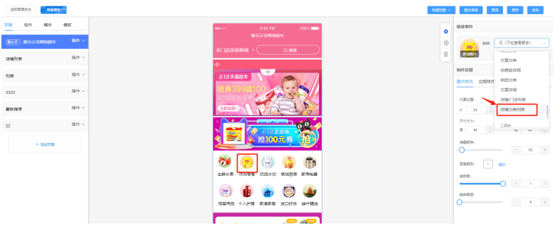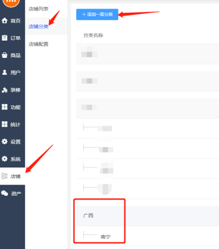 一个模块里如何链接几个店铺 发表于:2021-04-20 10:22:59 第一步添加一个一级分类和二级分类第二步店铺列表—编辑给店铺选择分类分类好了是这样的第三步进入装修页面—选择模块—链接—店铺分类列表选择分类先保存—预览
