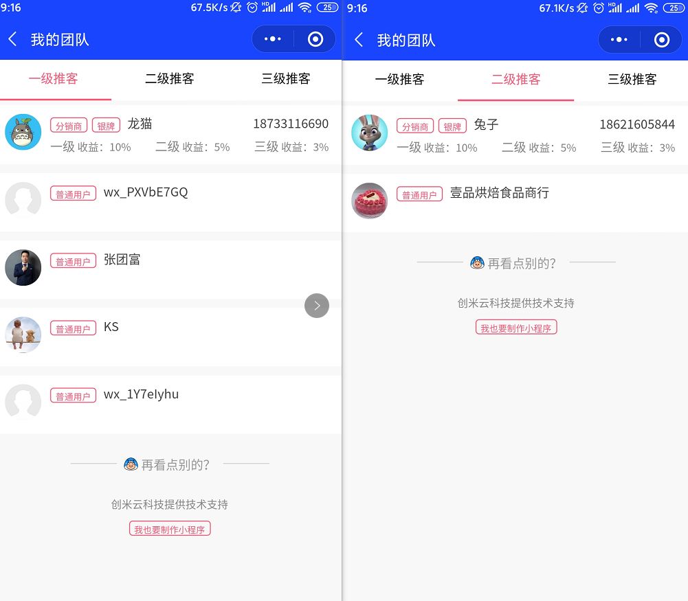 分销商在小程序里面分销中心可以看到自己的三级推客。