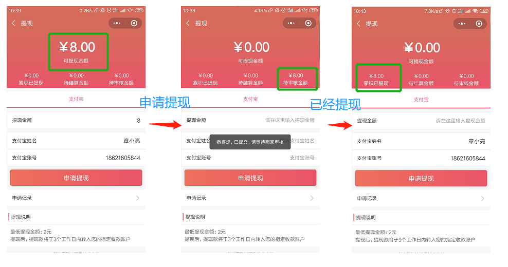 待审核金额:分销商发起申请提现,还未被平台通过时。