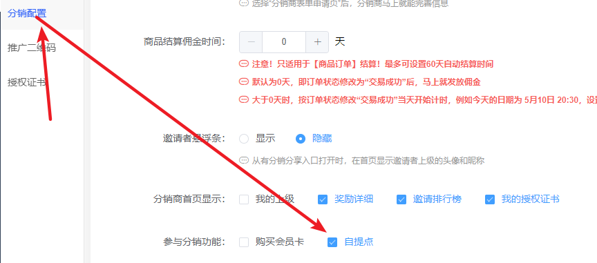 最后,任何用户购买参与分销的商品,并且下单方式为自提点,此时自提点关联的分销商就可以获得佣金提成。