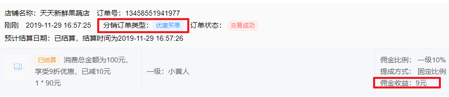 分销商下级优惠买单,分销商也会得佣金,当然前提是分享功能必须开启。佣金比例和分销功能里面是一致的。